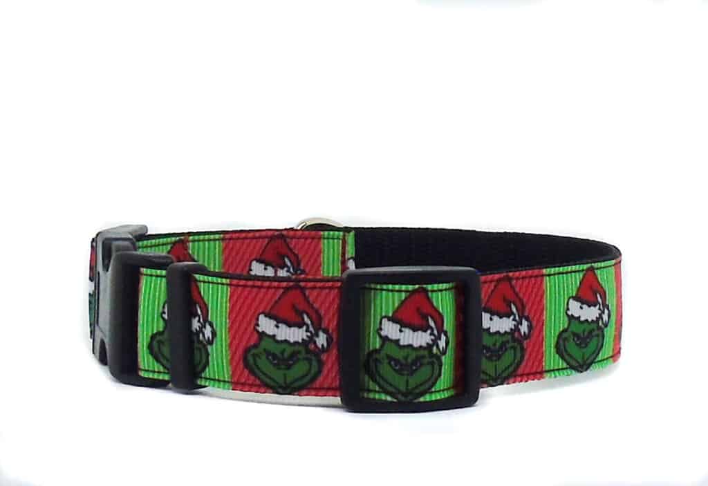 Red and green Grinch print 16mm width adjustable collar.