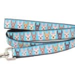 Blue coloured llama print dog collar and lead set.