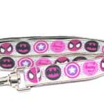 We use a strong nylon webbing to make the collars and leads, and use a printed grosgrain ribbon.