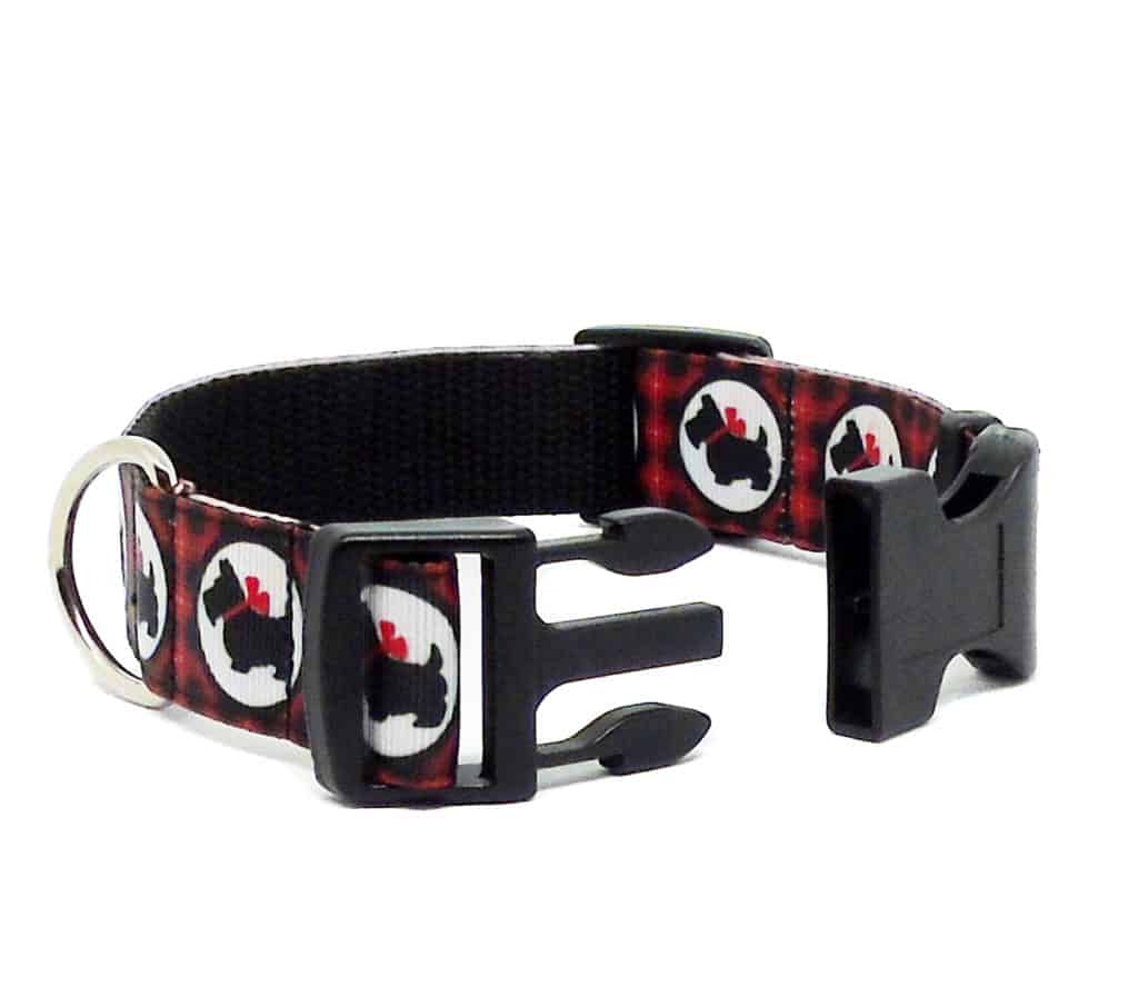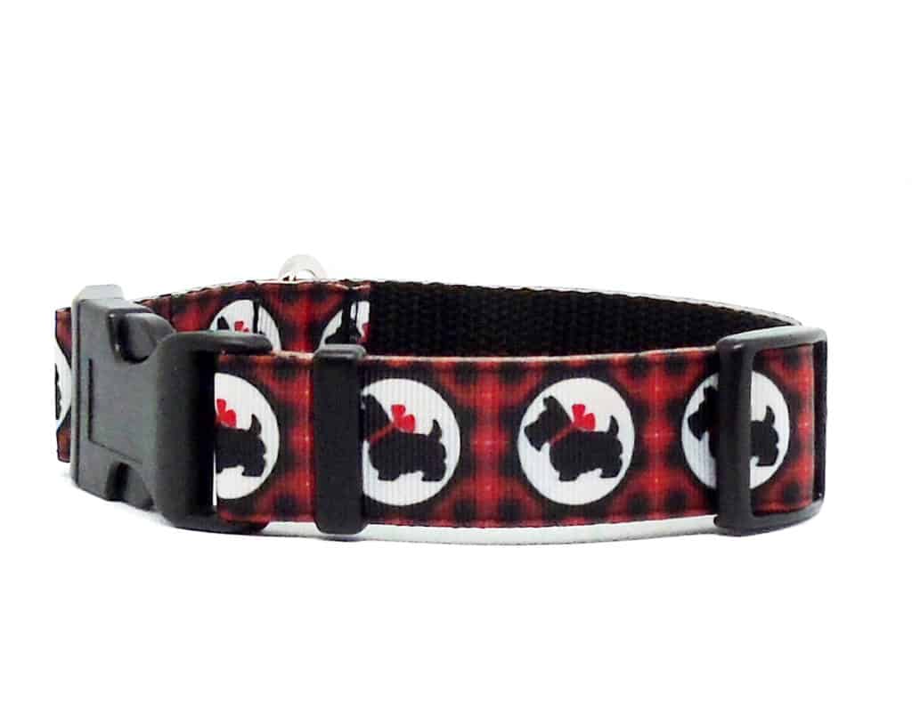 Black and red Scottie Dog print dog collar.