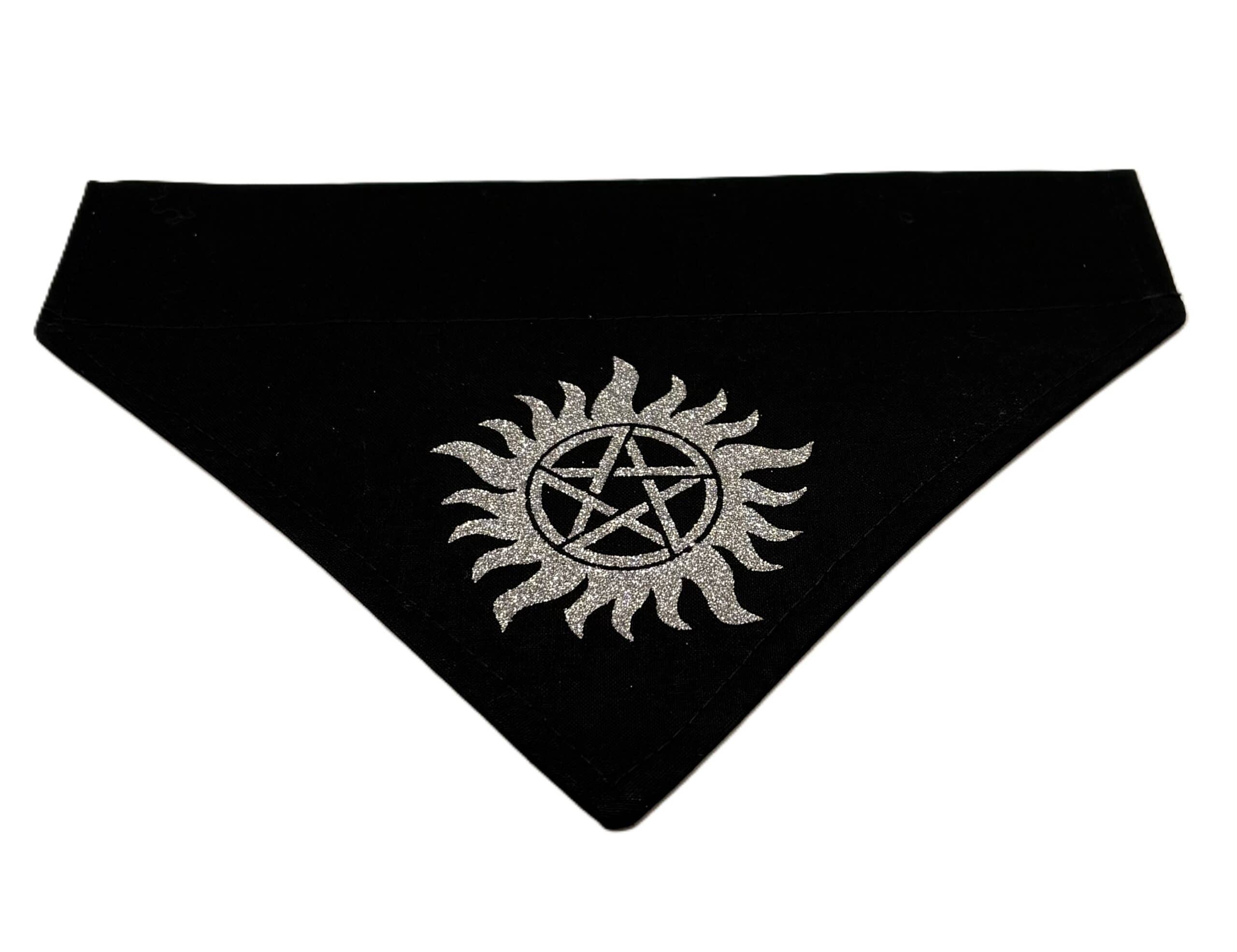 Let your dog channel serious Winchester energy with this Supernatural inspired dog bandana, featuring the iconic anti-possession symbol in striking silver glitter vinyl.