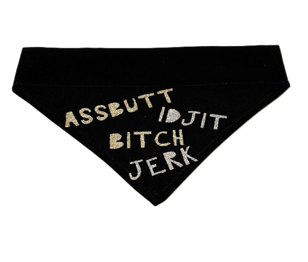 Inspired by iconic insults and banter from Supernatural, this black cotton bandana features glitter vinyl wording that fans will instantly recognise. It’s funny, blunt, and absolutely not subtle – perfect for dogs with attitude and owners who love the darker humour of the show.